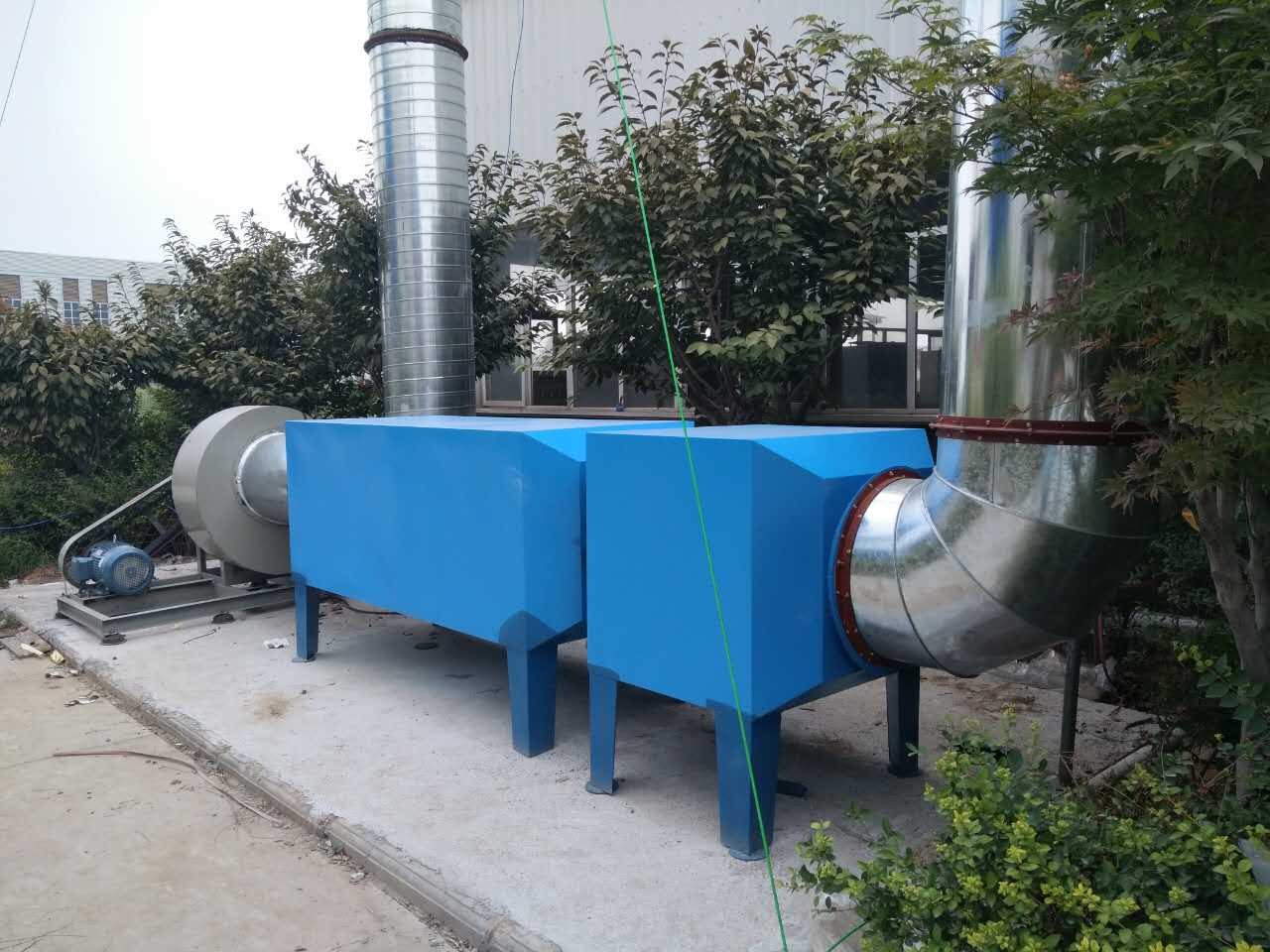 生產(chǎn)過程產(chǎn)生的廢氣,由風(fēng)機的吸力作用下***入干式過濾區(qū),將廢氣中較大顆粒雜質(zhì)去除;然后進入到等離子凈化區(qū),使廢氣中其余顆粒型煙塵雜質(zhì)被優(yōu)先去除,濃度逐漸降低,*后進入 UV 光氧催化區(qū),在光氧中,UV 燈管產(chǎn)生高能光束照射廢氣,使廢氣裂解,與此同時燈管產(chǎn)生的紫外線分解空氣中的氧分子,*終產(chǎn)生臭氧,對廢氣進行氧化,反應(yīng)生成水和二氧化碳,并且能去除因為氣體產(chǎn)生的異味,凈化后的氣體完全達到國家排放標(biāo)準(zhǔn)。